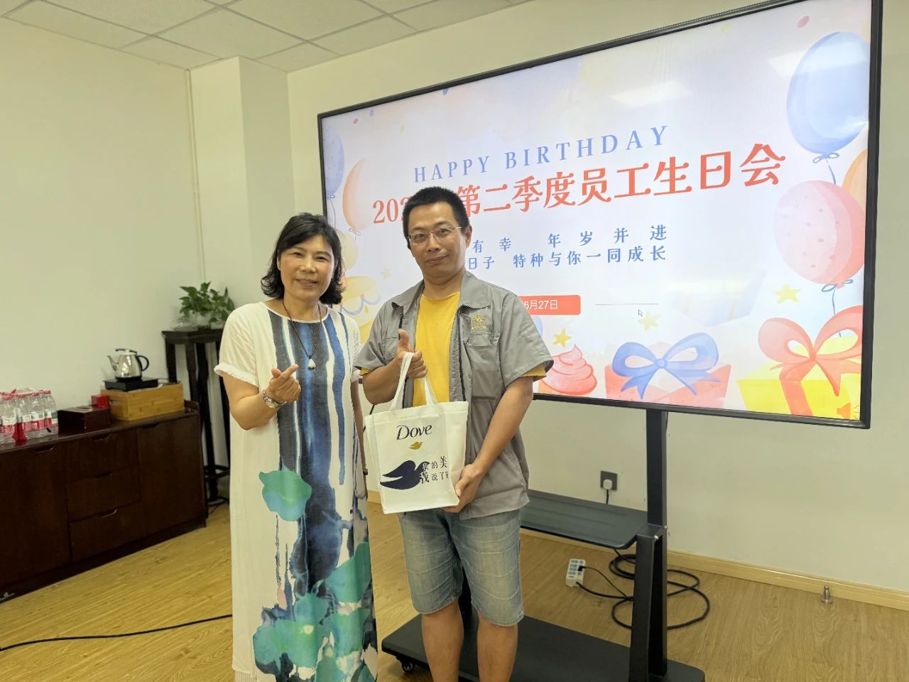 Oprócz serdecznych życzeń urodzinowych i słodkich ciast, firma przygotowała spersonalizowane prezenty dla każdego urodzinowego celebrana! Gdy prezenty zostały dostarczone, zaskoczone i zachwycone uśmiechy natychmiast rozjaśniły ich twarze. Ten ekskluzywny gest opieki stanowi najcieplejsze uznanie dla dedykowanej pracy wszystkich.