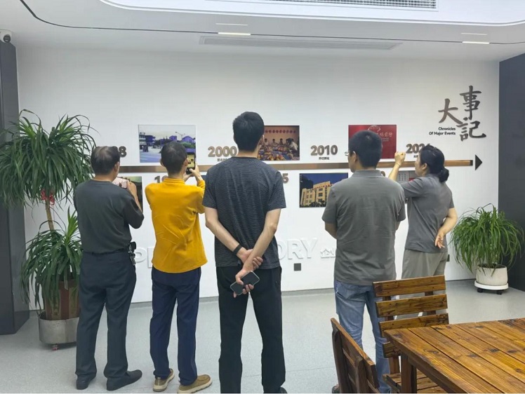 Następnie dyrektor generalny YU doprowadził klientów do odwiedzenia siedziby grupy. Ta „kronika” dokumentuje w każdej kluczowej chwili od naszego ustanowienia. Jak tylko dyrektor generalny Yu wszedł do sali kulturalnej kwatery głównej, wskazał stare zdjęcia i teksty na ścianie i zaczął powoli opowiadać klientowi historię firmy. „W 1988 r. Zaczęliśmy od niewielkich warsztatów. W tym czasie ustaliliśmy zasadę„ budowania przedsiębiorstwa na podstawie jakości i leczenia osób z uczciwością ”. Obecnie minęły 37 lat, a ten pierwotny zamiar nigdy się nie zmienił.” W sali wystawowej wyświetlane są również różne certyfikaty wyróżnień, dokumenty kwalifikacyjne i studia usług uzyskane. Kiedy klienci zatrzymali się, aby oglądać, Yu dodał: „Nie produkujemy„ sprzętu ”dla naszych produktów; musimy również świadczyć„ usługi ”. Podobnie jak na tej ścianie,„ przekształcając potrzeby klientów w nasze pościg ”, jest to zasada wygrawerowana w sercach każdego pracownika”.