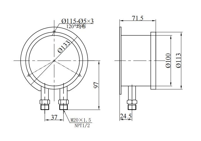 3. Rozmiar wątku wspólnego: konwencjonalny M20 × 1.5 , NPT1/2 (lub oznaczenie klienta);