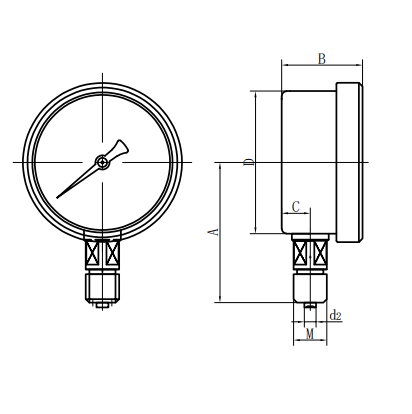 | Ye100 -Ⅰ | 93 | 50 | 16.5 | Φ 100 | 16.5 | φ 6 | M20 × 1.5 |